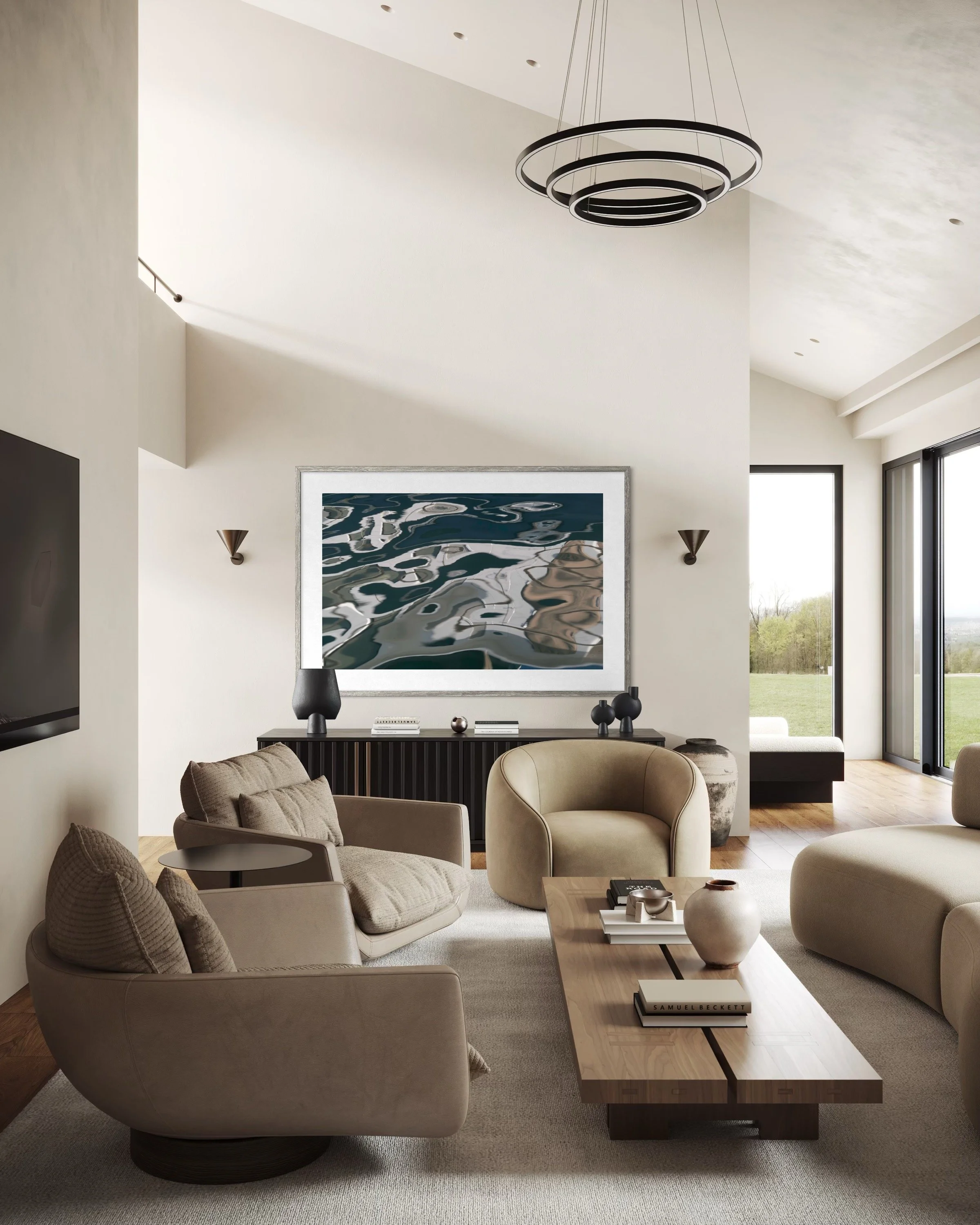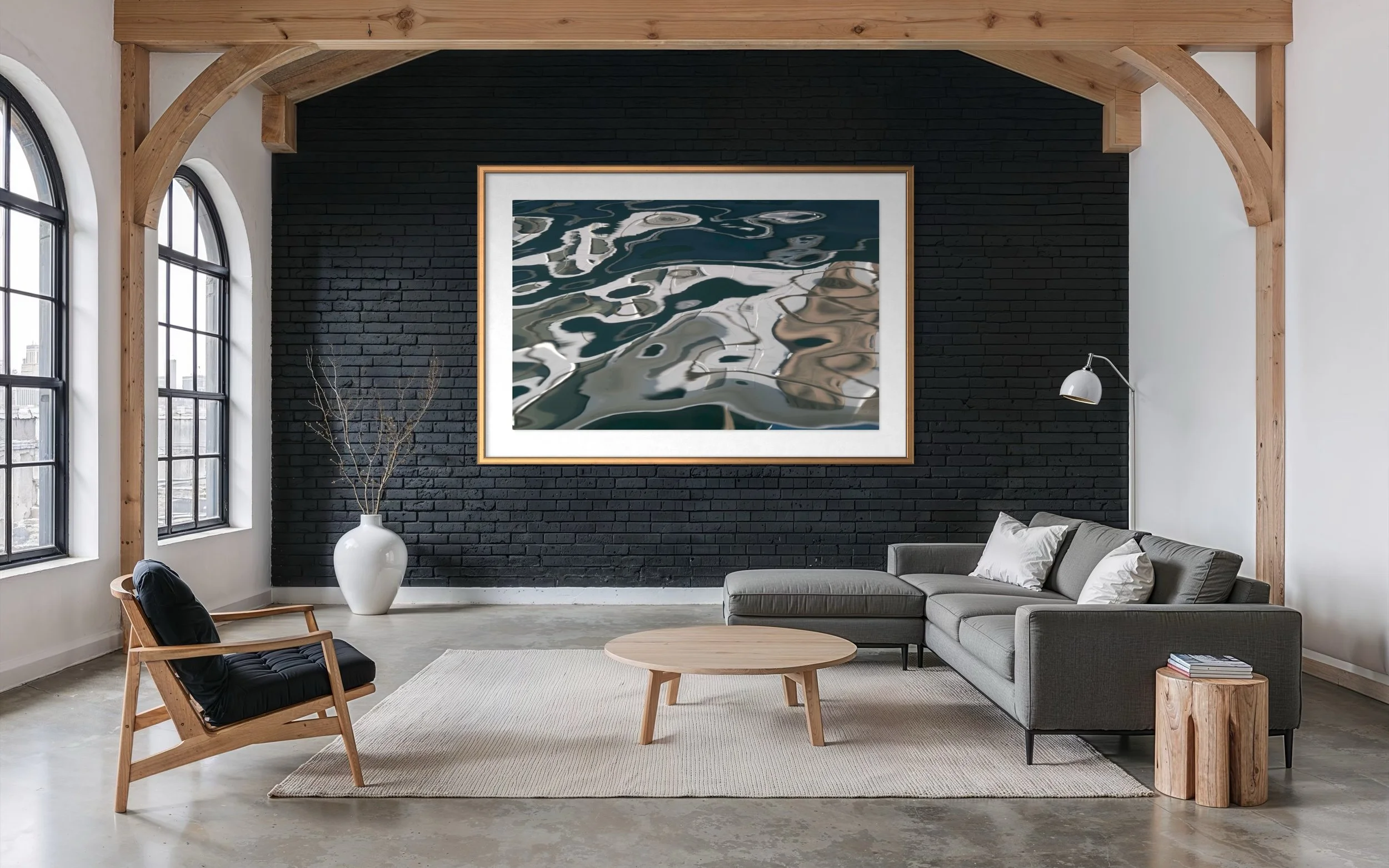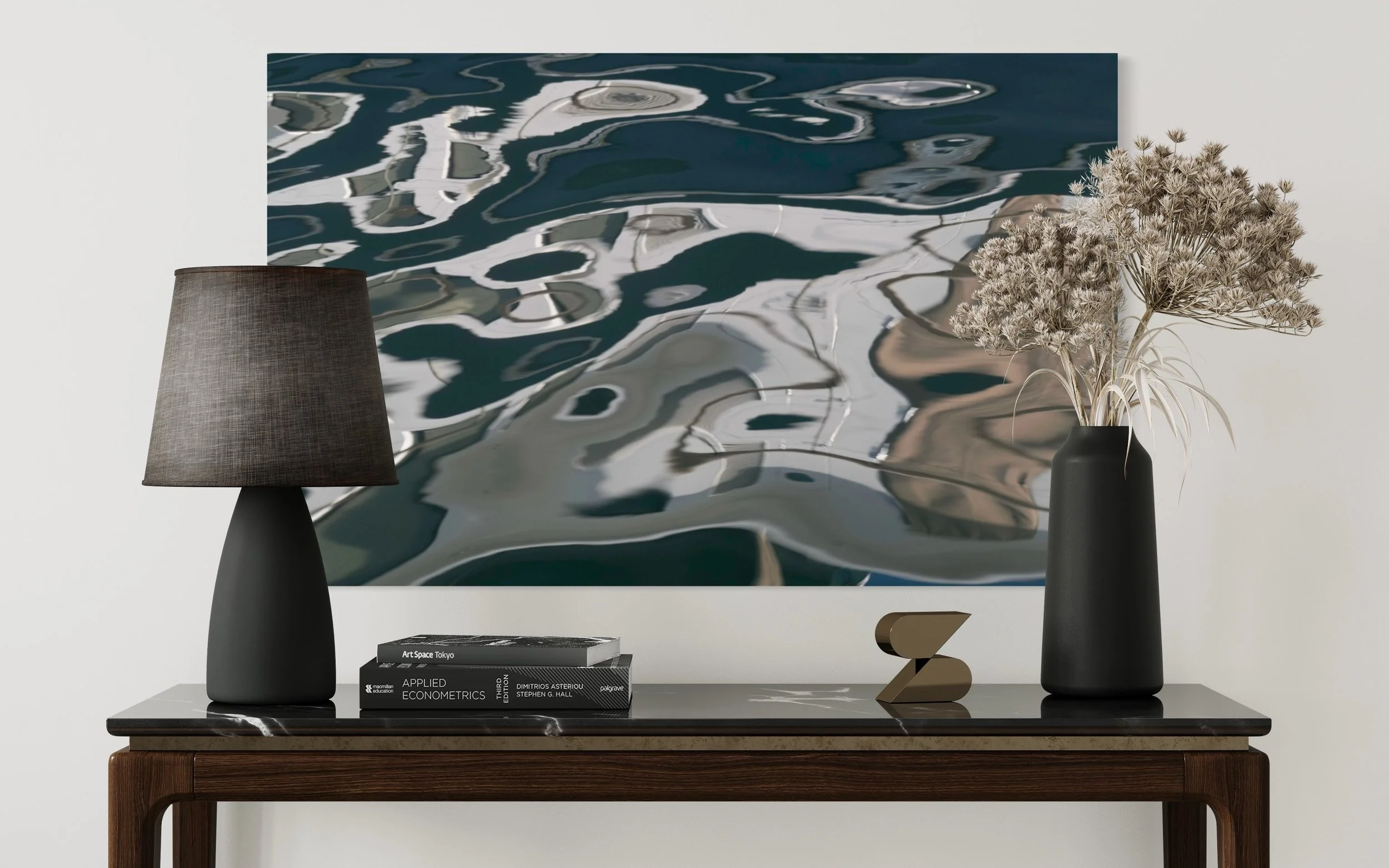 The Aerial & Earth series reveals distant horizons and intricate ecological details within the reflective surface of water. These artworks transform reflections into landscapes of endless imagination, showcasing a mesmerising interplay of shapes, colours, light, and form. Each piece offers an invitation to visual meditation, encouraging viewers to discover a boundless world within the small and often overlooked.
