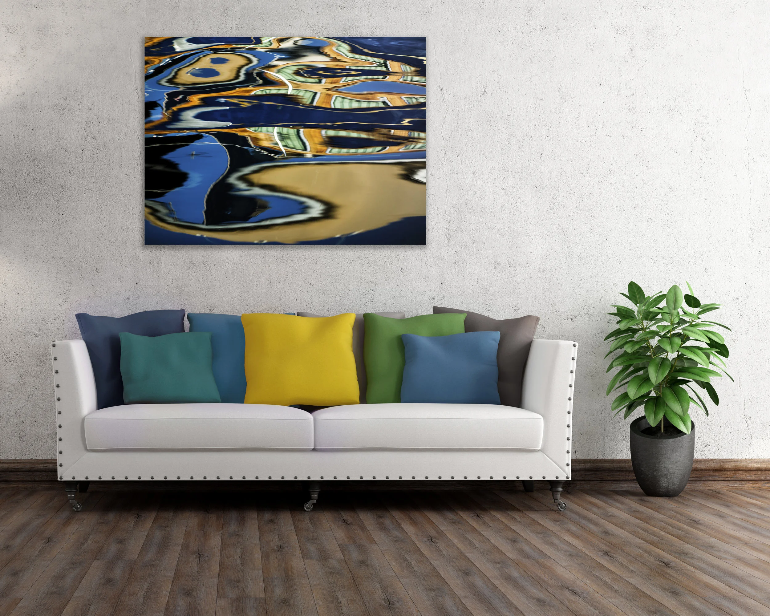 Each work consists of abstractions found in reflections on the surface of water. The images are not photo-shopped or artificially created. They are images nature has created at a moment in time and exist in reality.. There is no right or wrong way to view the work. Each piece is designed for viewers to form their own meaning through the image's shape, colour and form. The works purpose is to encourage pleasurable aesthetic mediation and connection.