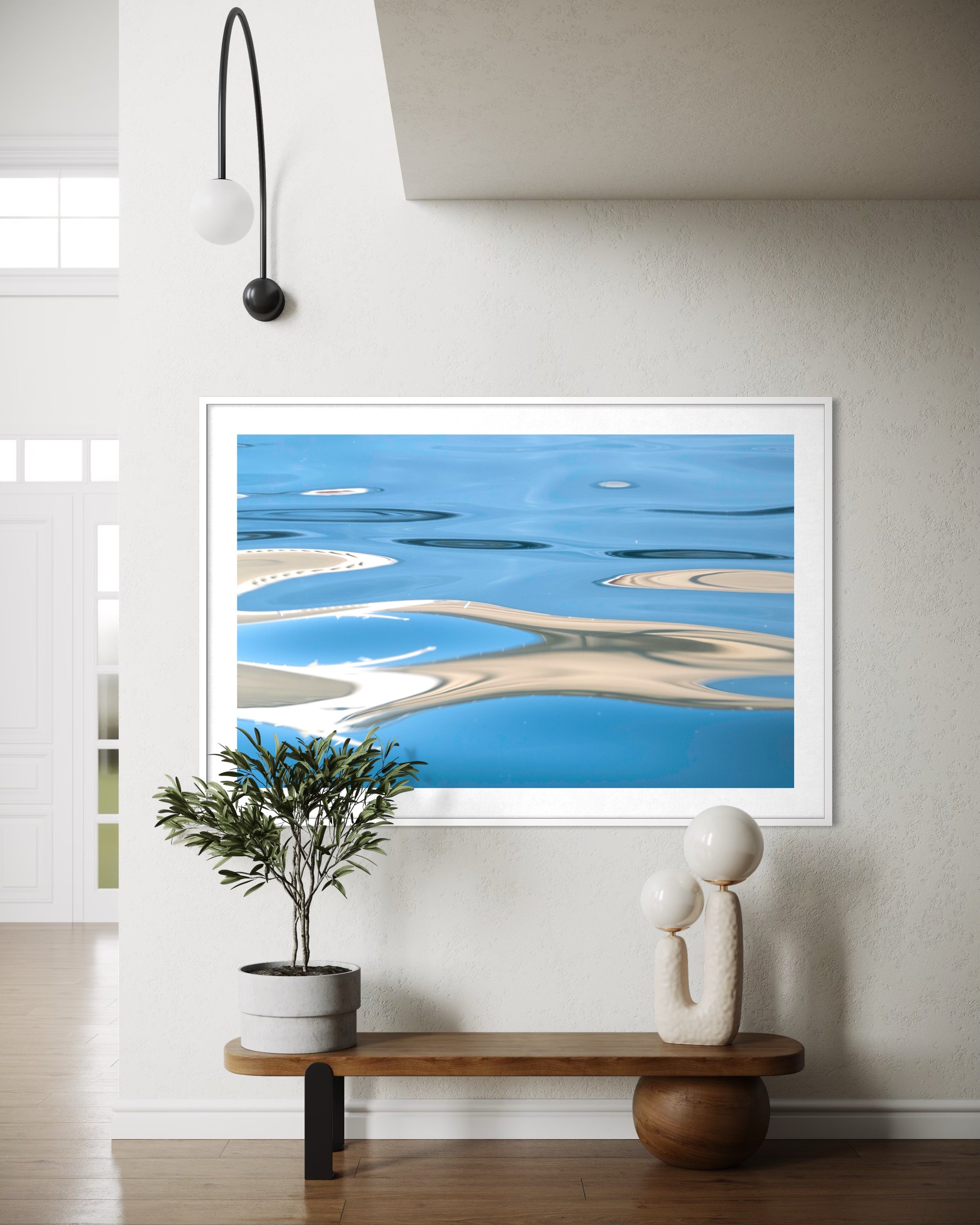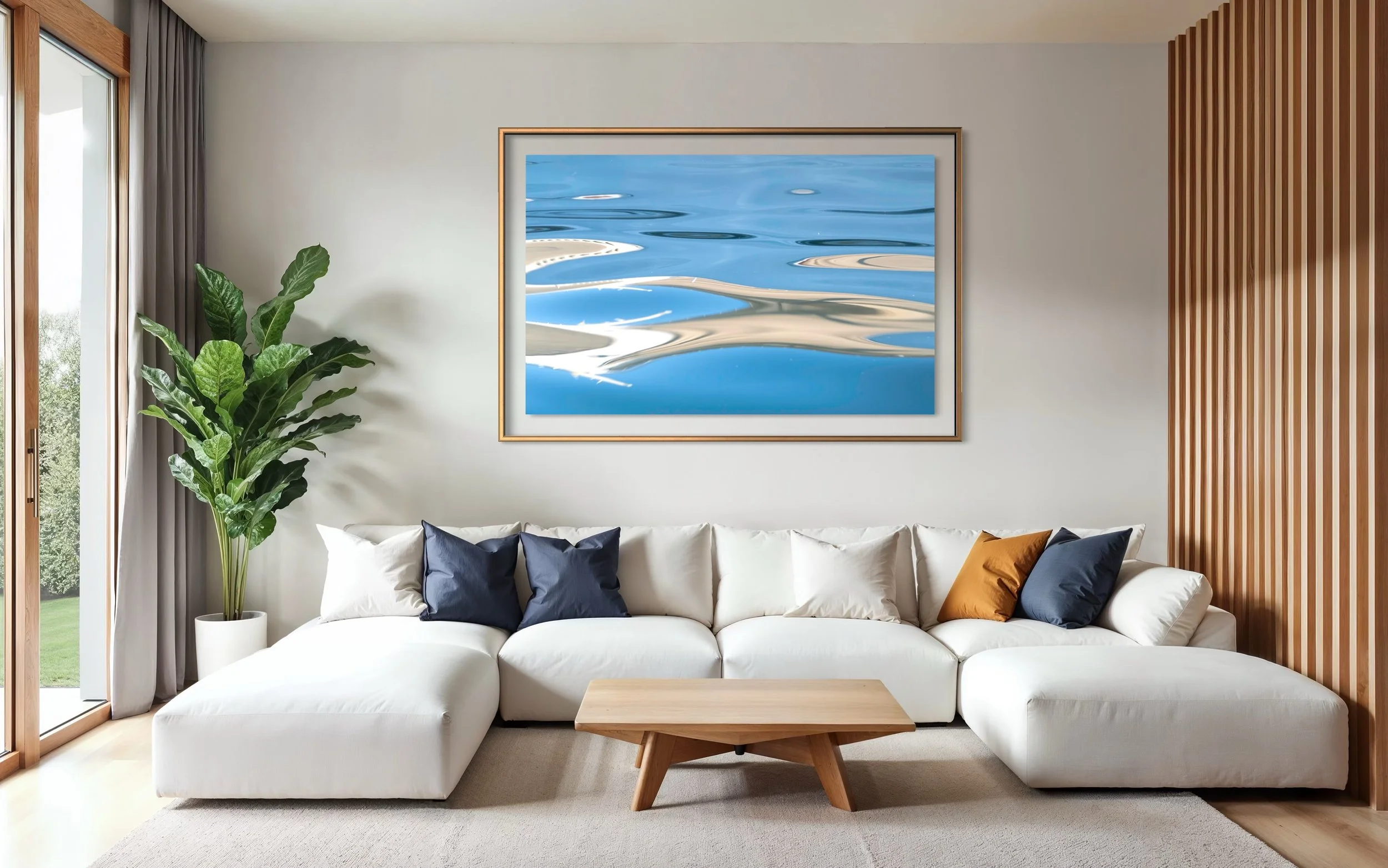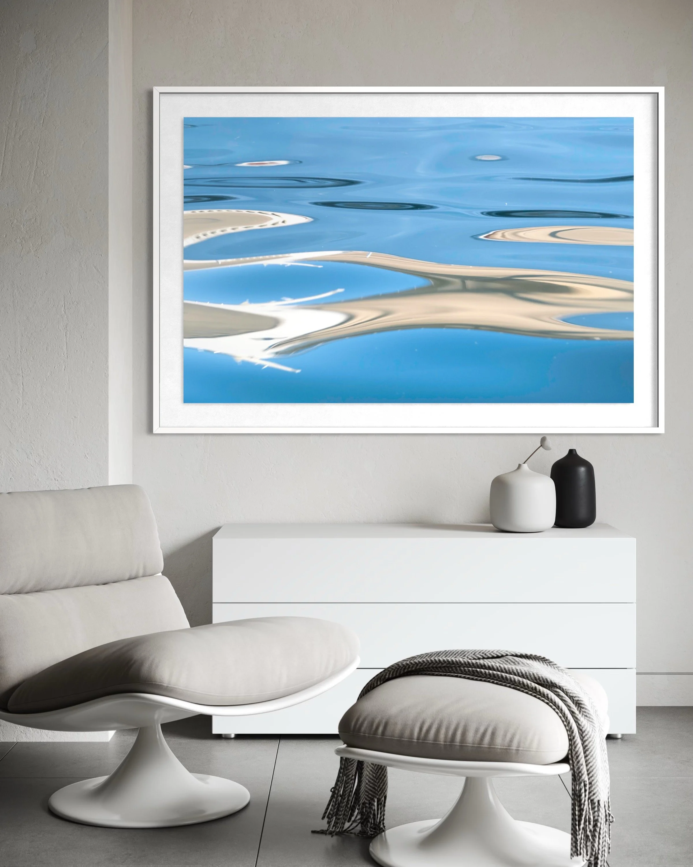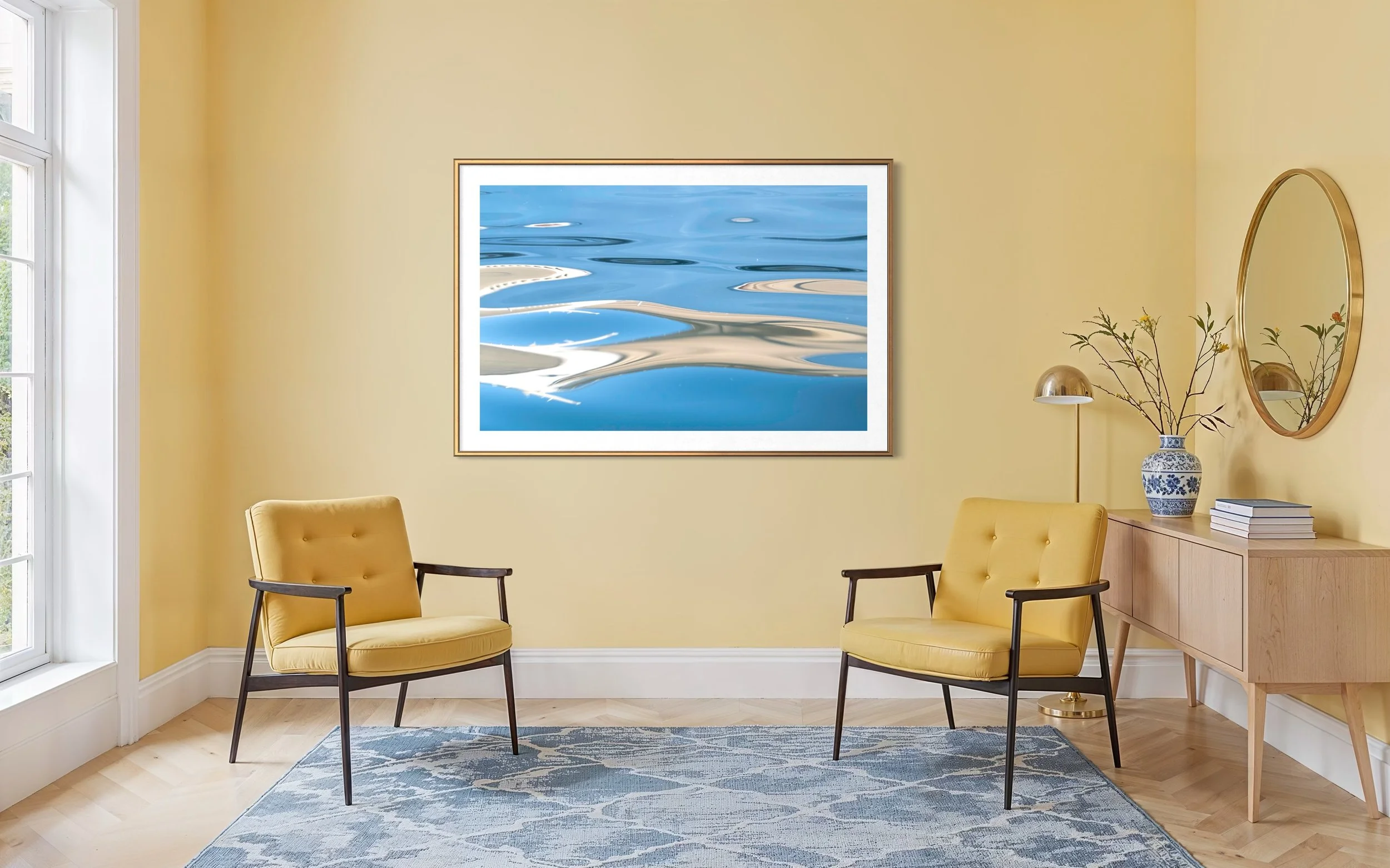 Each work consists of abstractions found in reflections on the surface of water. The images are not photo-shopped or artificially created. They are images nature has created at a moment in time and exist in reality.. There is no right or wrong way to view the work. Each piece is designed for viewers to form their own meaning through the image's shape, colour and form. The works purpose is to encourage pleasurable aesthetic mediation and connection.