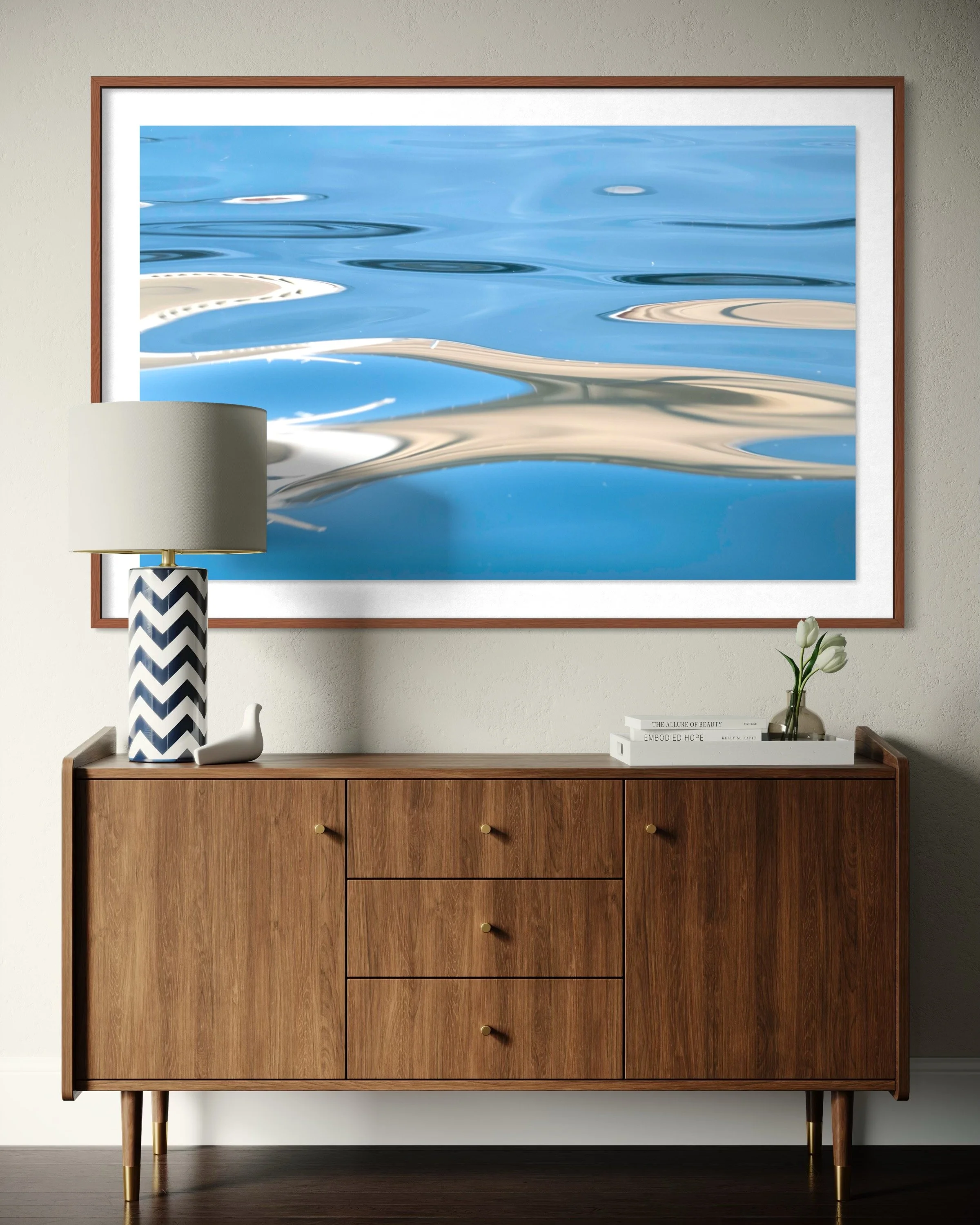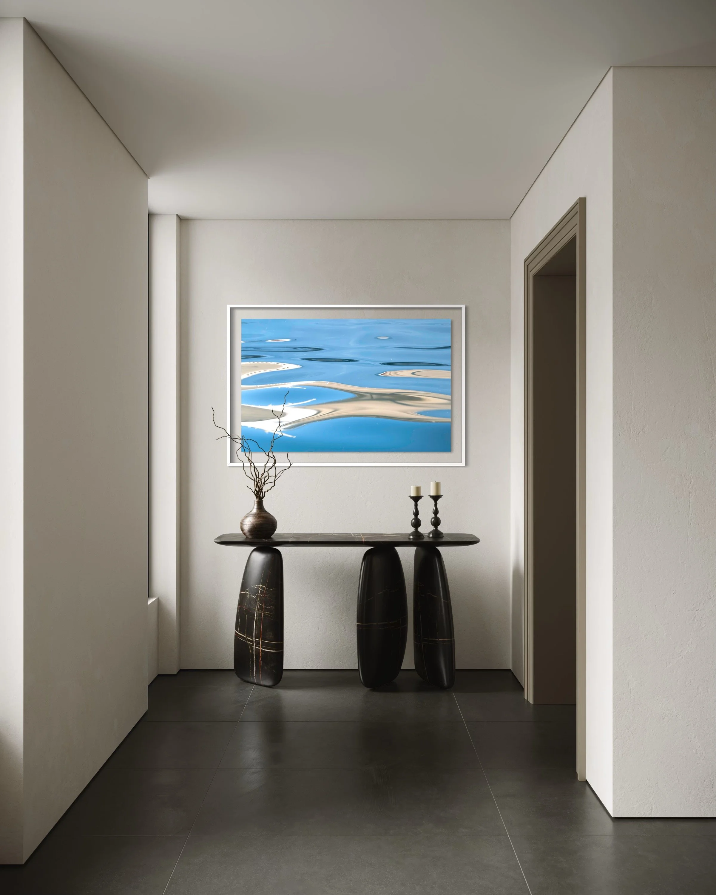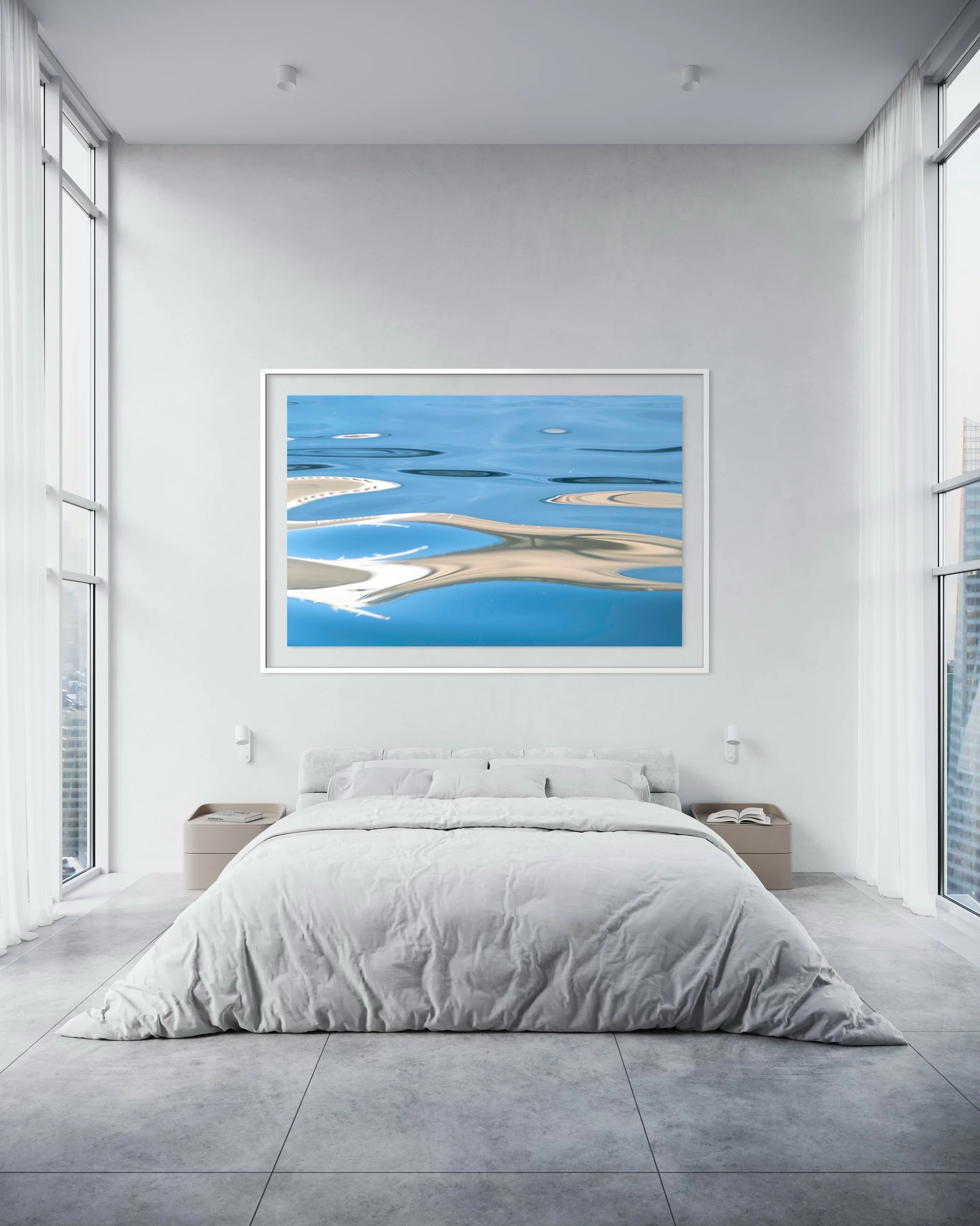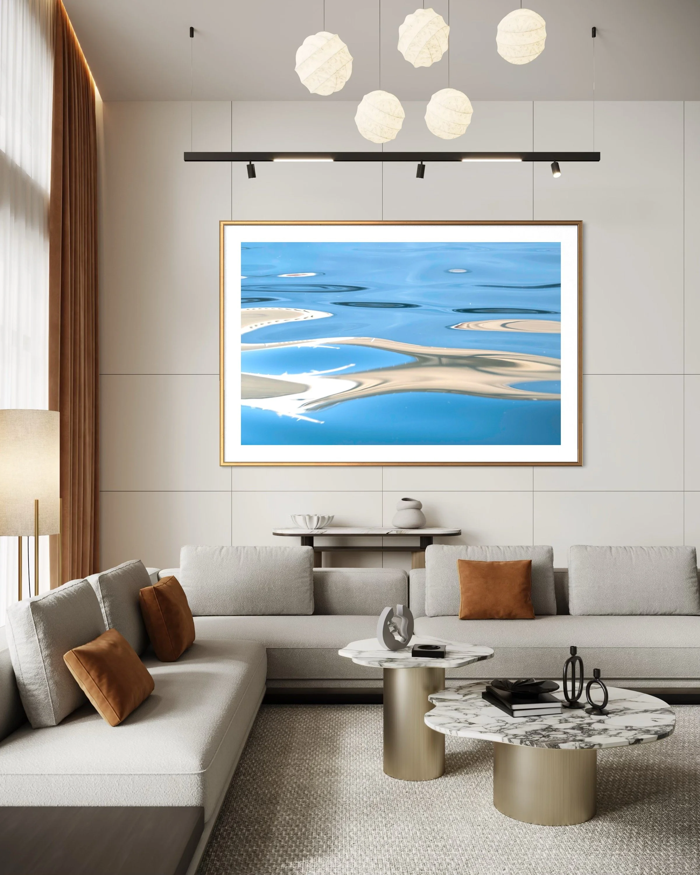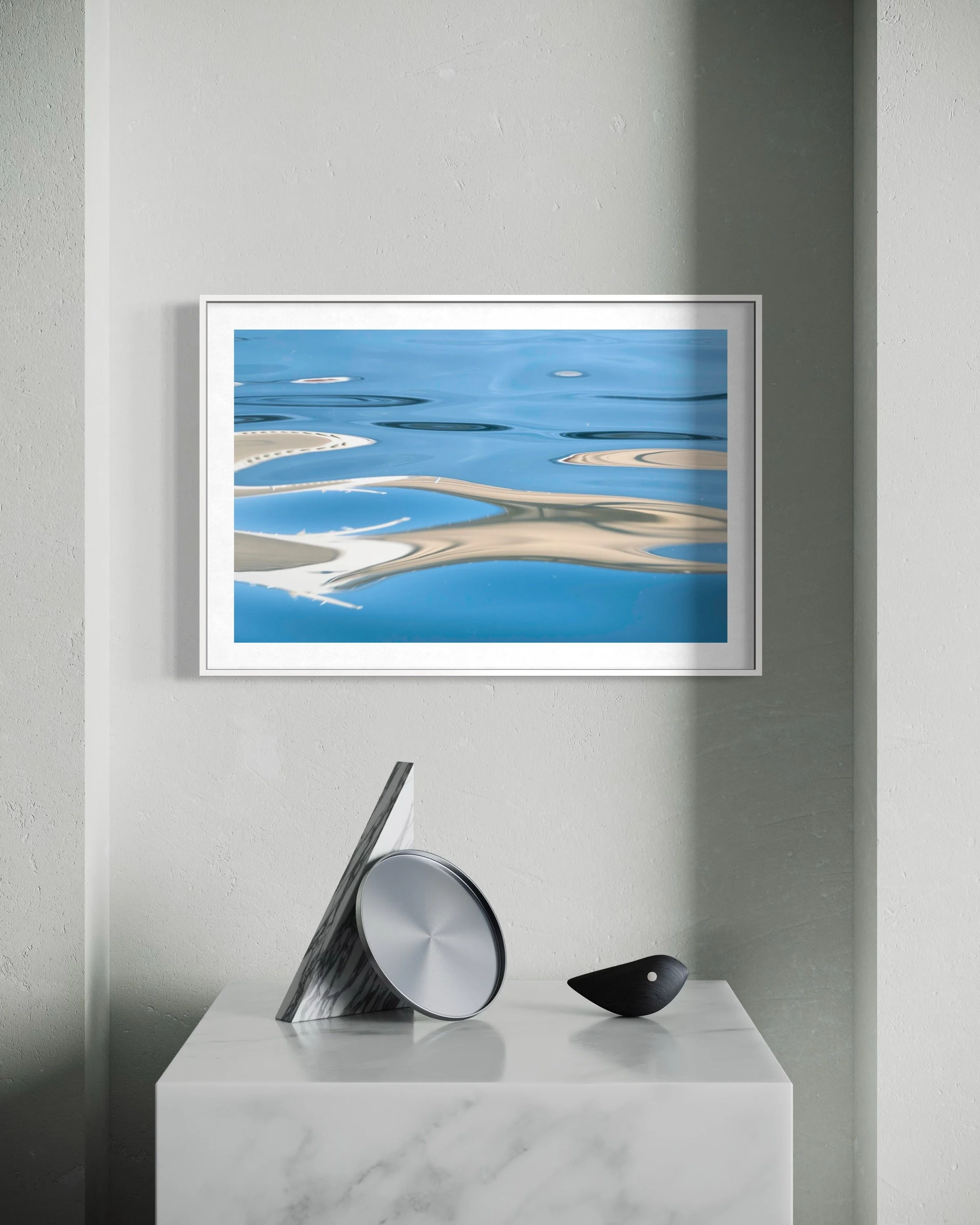 Each work consists of abstractions found in reflections on the surface of water. The images are not photo-shopped or artificially created. They are images nature has created at a moment in time and exist in reality.. There is no right or wrong way to view the work. Each piece is designed for viewers to form their own meaning through the image's shape, colour and form. The works purpose is to encourage pleasurable aesthetic mediation and connection.