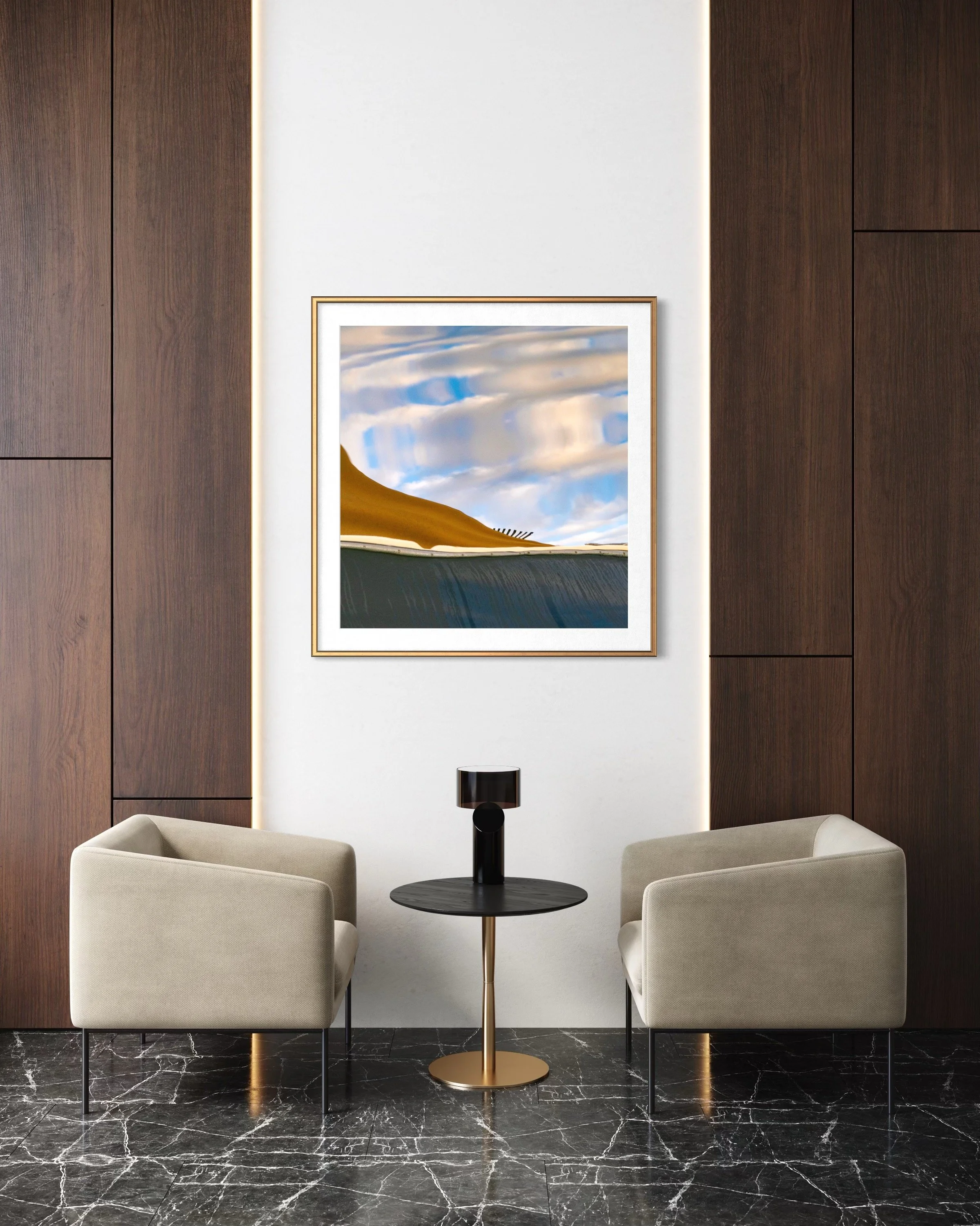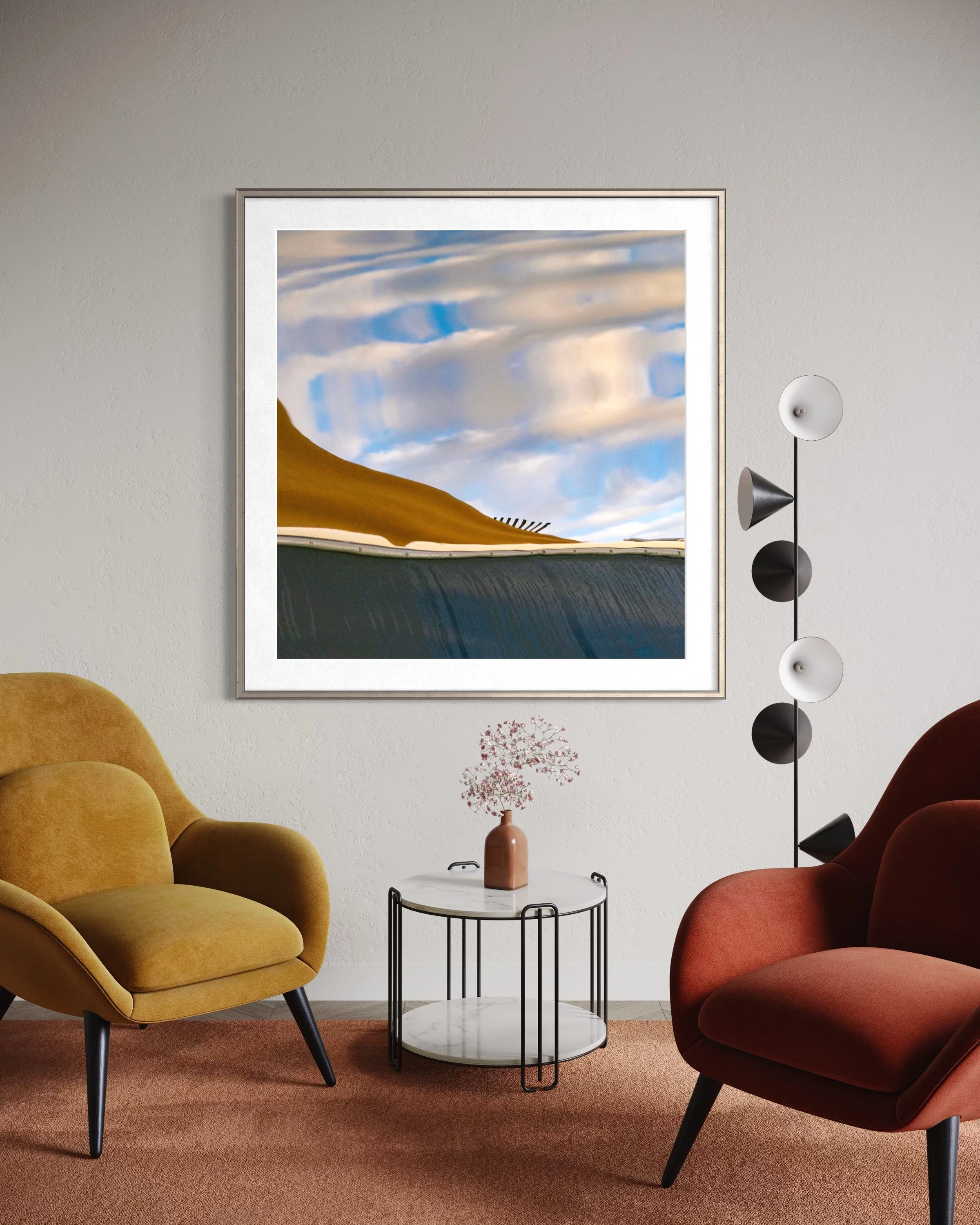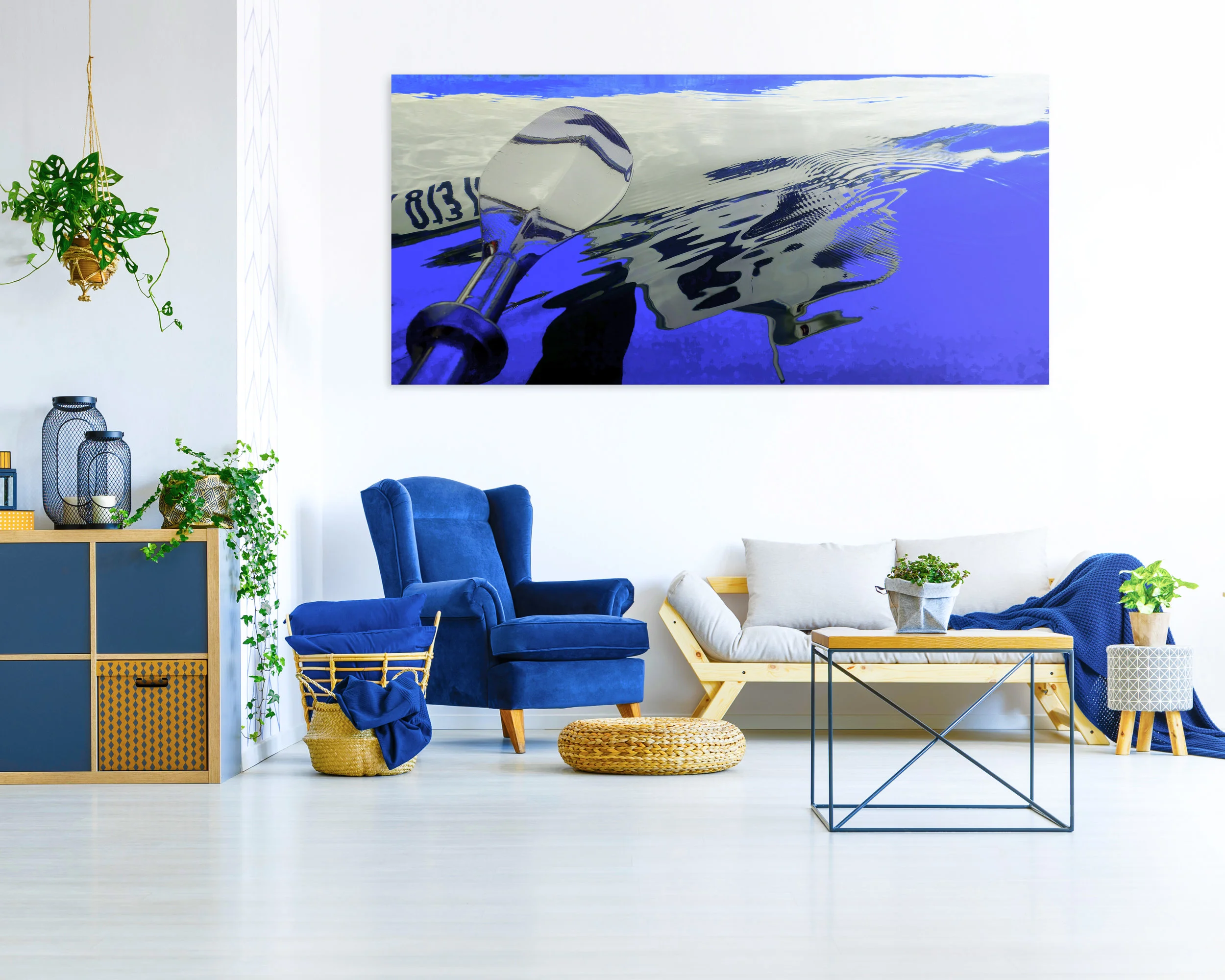 Each work consists of abstractions found in reflections on the surface of water. The images are not photo-shopped or artificially created. They are images nature has created at a moment in time and exist in reality.. There is no right or wrong way to view the work. Each piece is designed for viewers to form their own meaning through the image's shape, colour and form. The works purpose is to encourage pleasurable aesthetic mediation and connection.