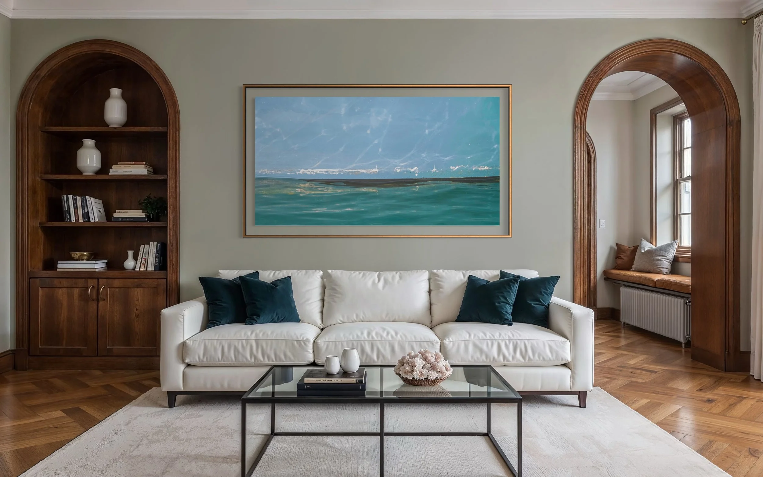 This work captures that delicate balance between stillness and presence — an abstract horizon that invites the viewer to pause, to breathe, and to let the mind settle.