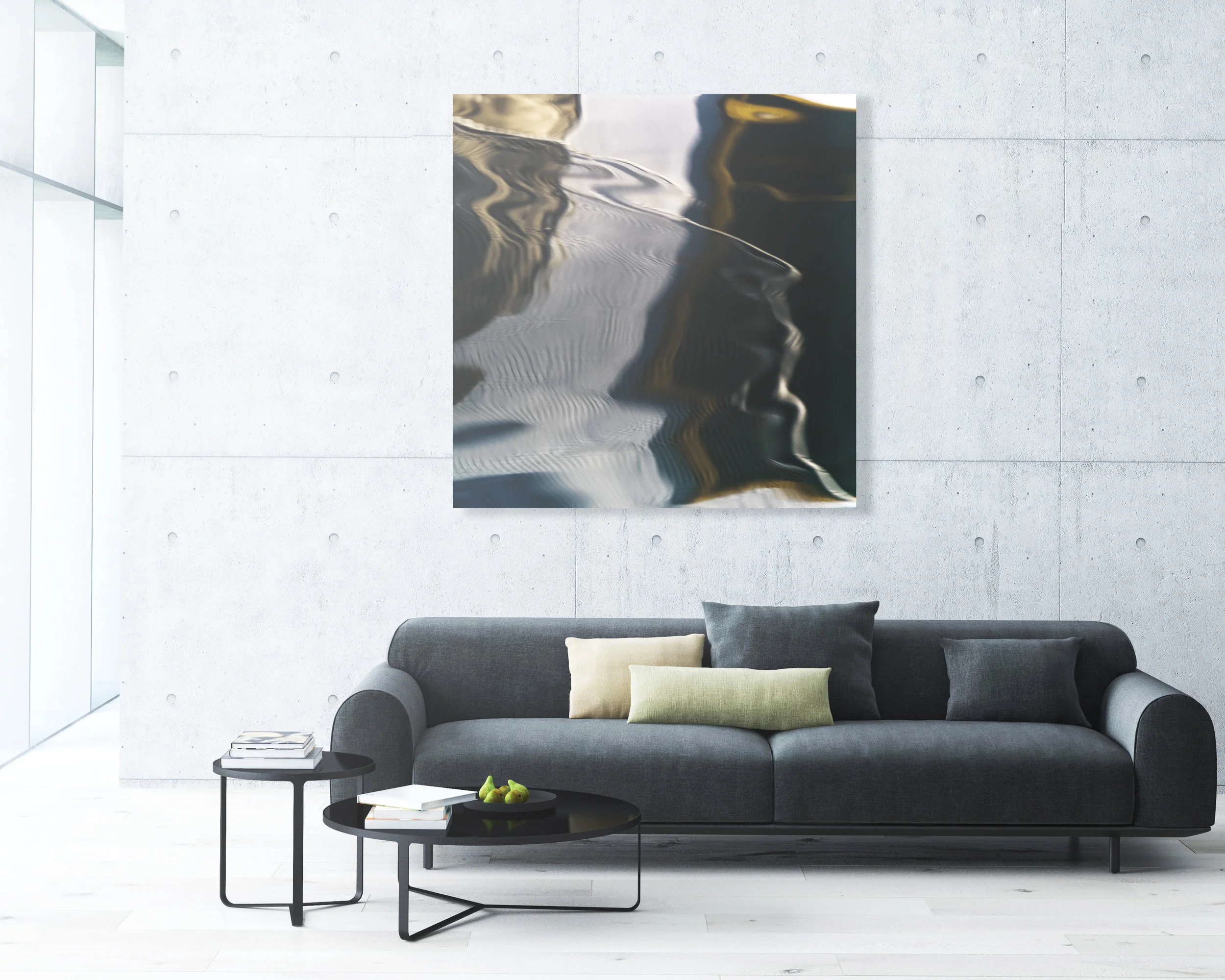 Each work consists of abstractions found in reflections on the surface of water. The images are not photo-shopped or artificially created. They are images nature has created at a moment in time and exist in reality.. There is no right or wrong way to view the work. Each piece is designed for viewers to form their own meaning through the image's shape, colour and form. The works purpose is to encourage pleasurable aesthetic mediation and connection.